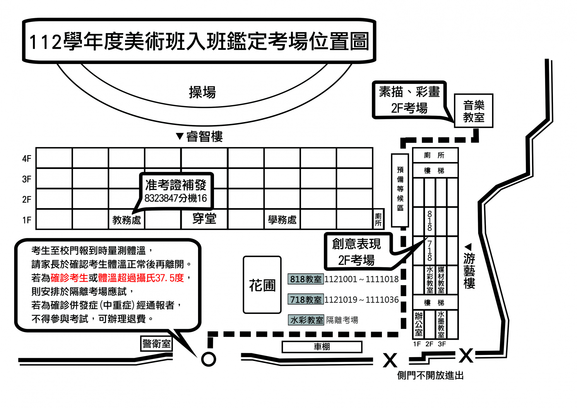 112學年度國風國中美術班入班鑑定考場位置圖及應考防疫注意事項