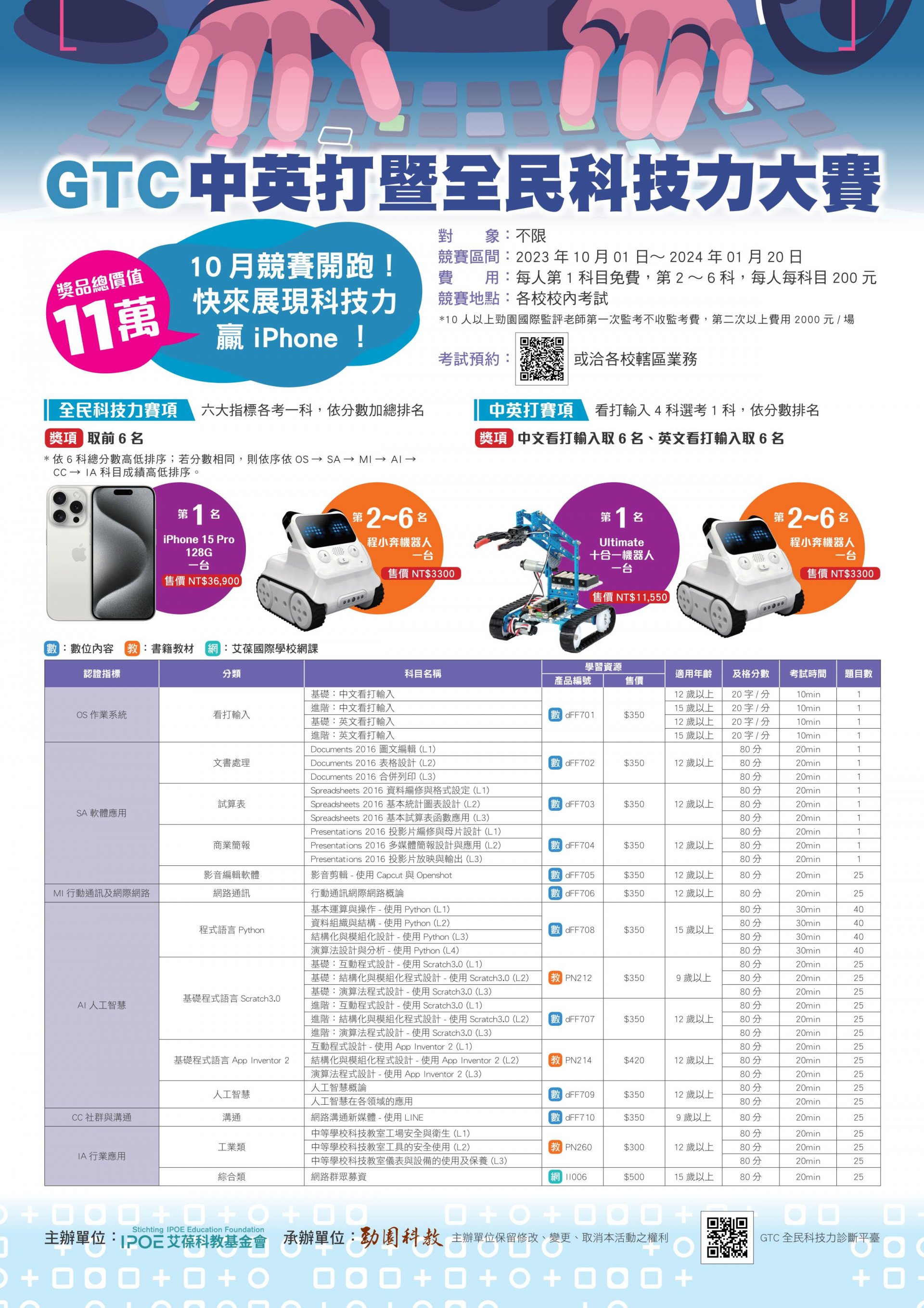 檢送「GTC中英打暨全民科技力大賽」活動文宣乙份,敬請轉知所屬各級公私立學校,並鼓勵同學踴躍報名參加。