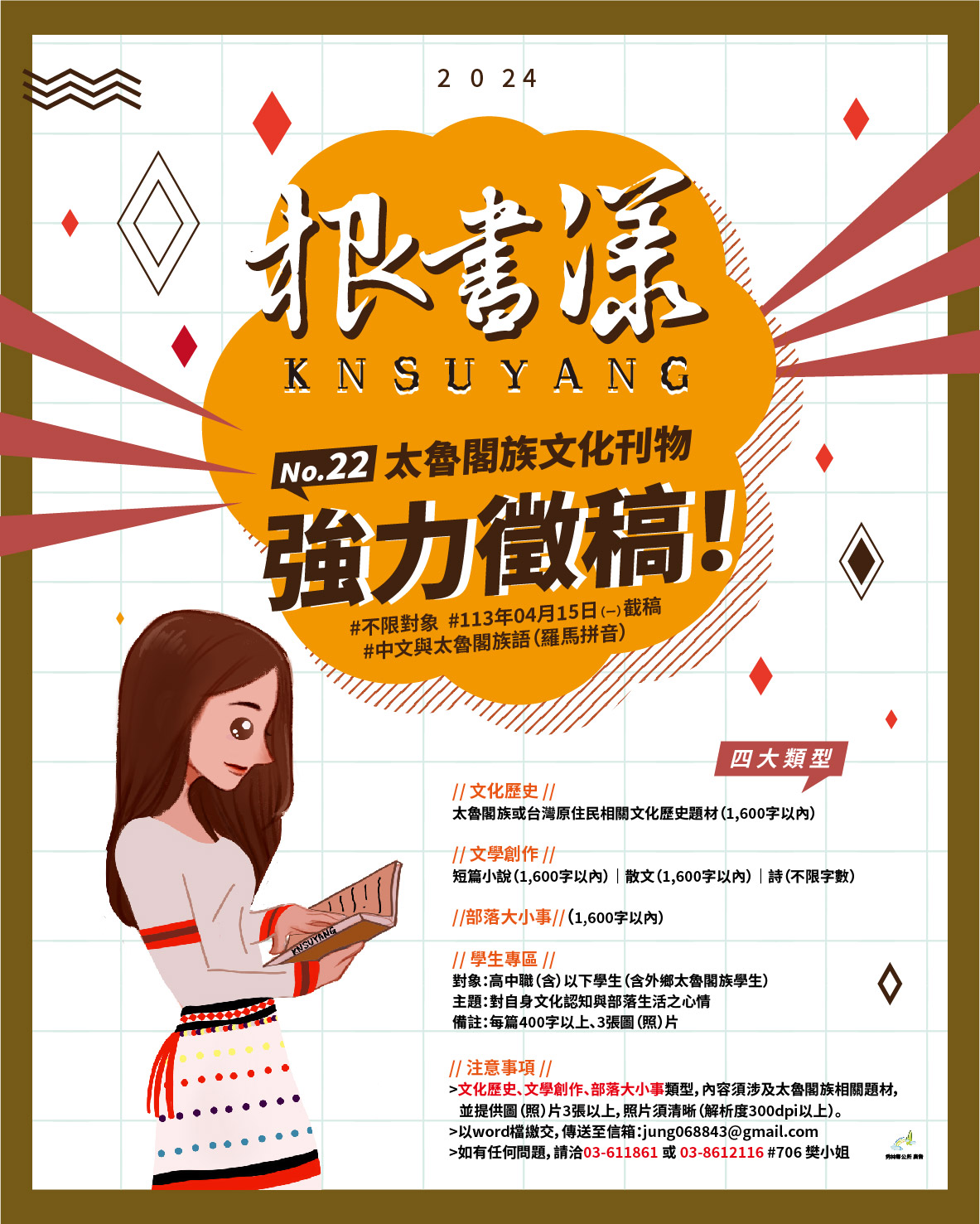 3、 | 新詩(不限文字及圖(照)片數量,內容須與太魯閣族相關之題材)。 |