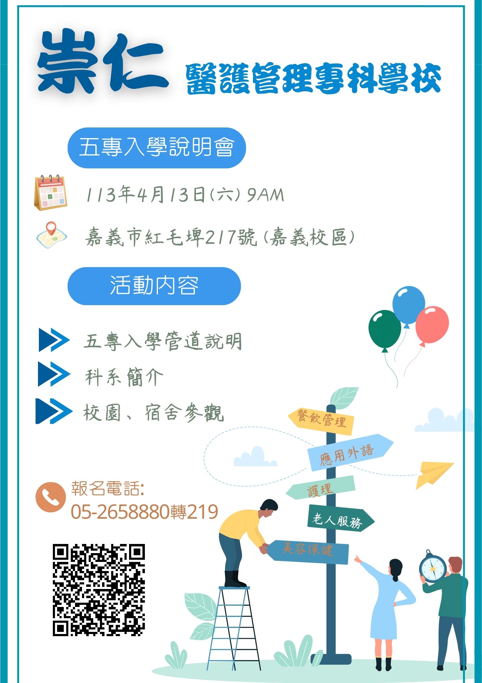 三、五專免試入學說明會海報及招生資訊請見附件。