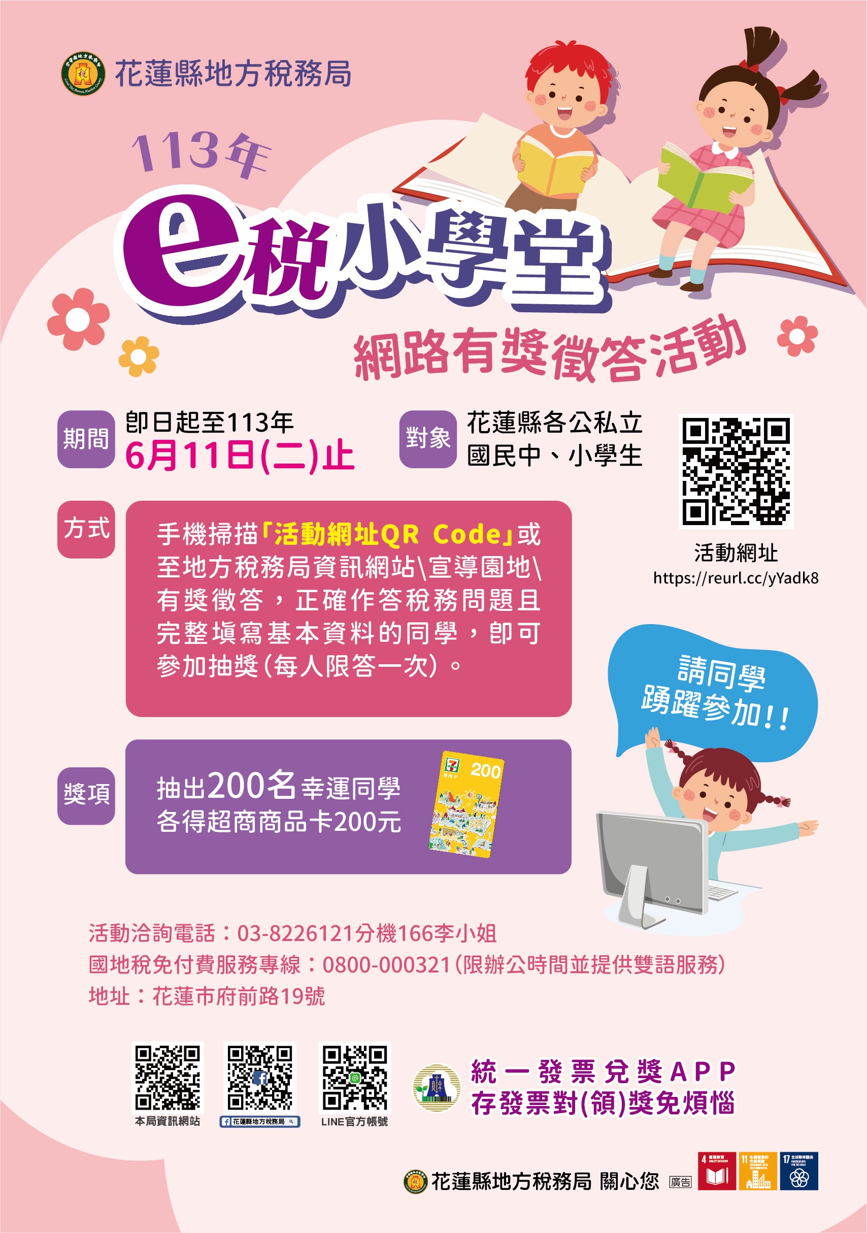 一、活動頁面:花蓮縣地方稅務局網站(https://www.hltb.gov.tw)首頁/宣導園地/有獎徵答,或輸入網址 https://reurl.cc/yYadk8 進入頁面。