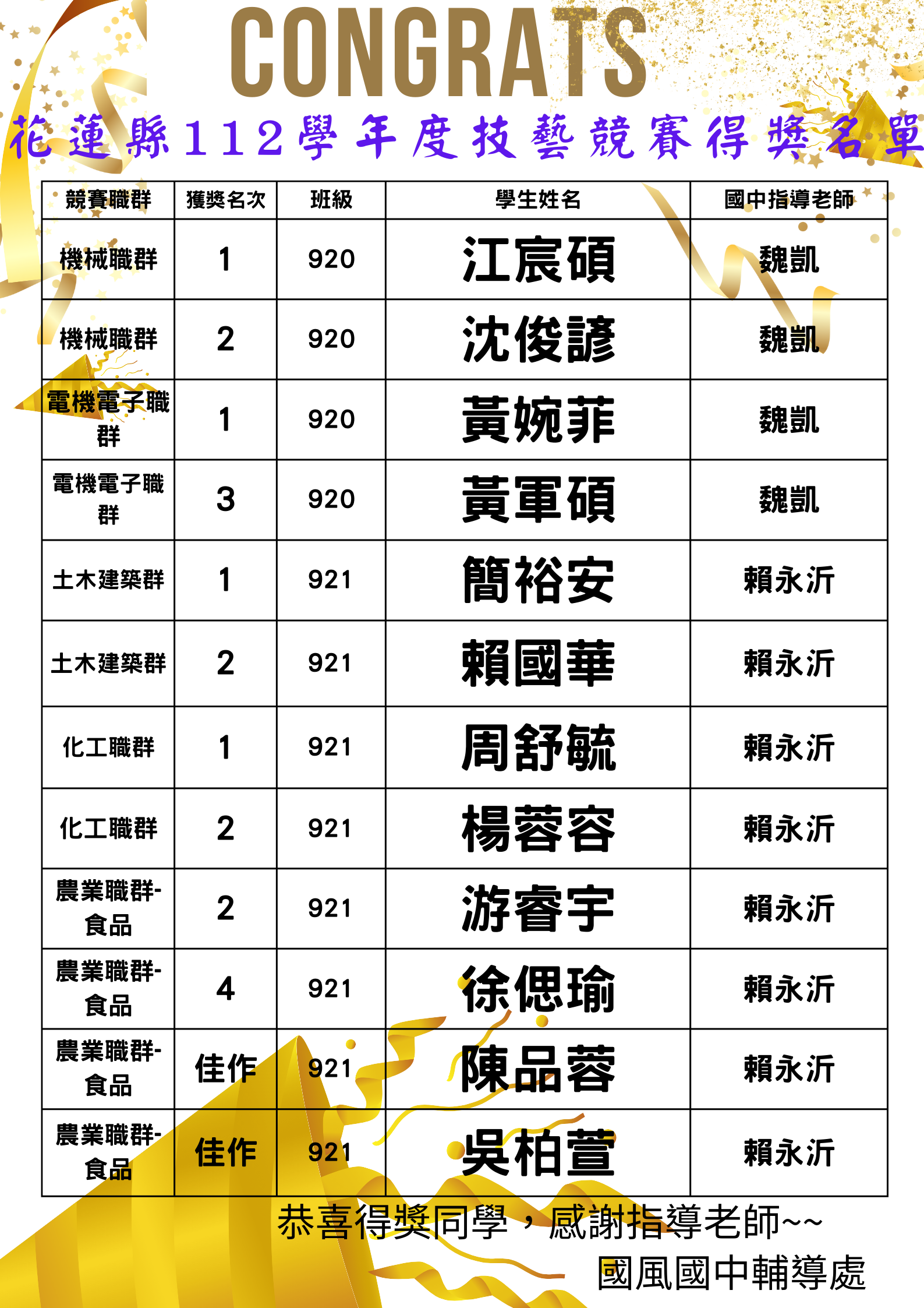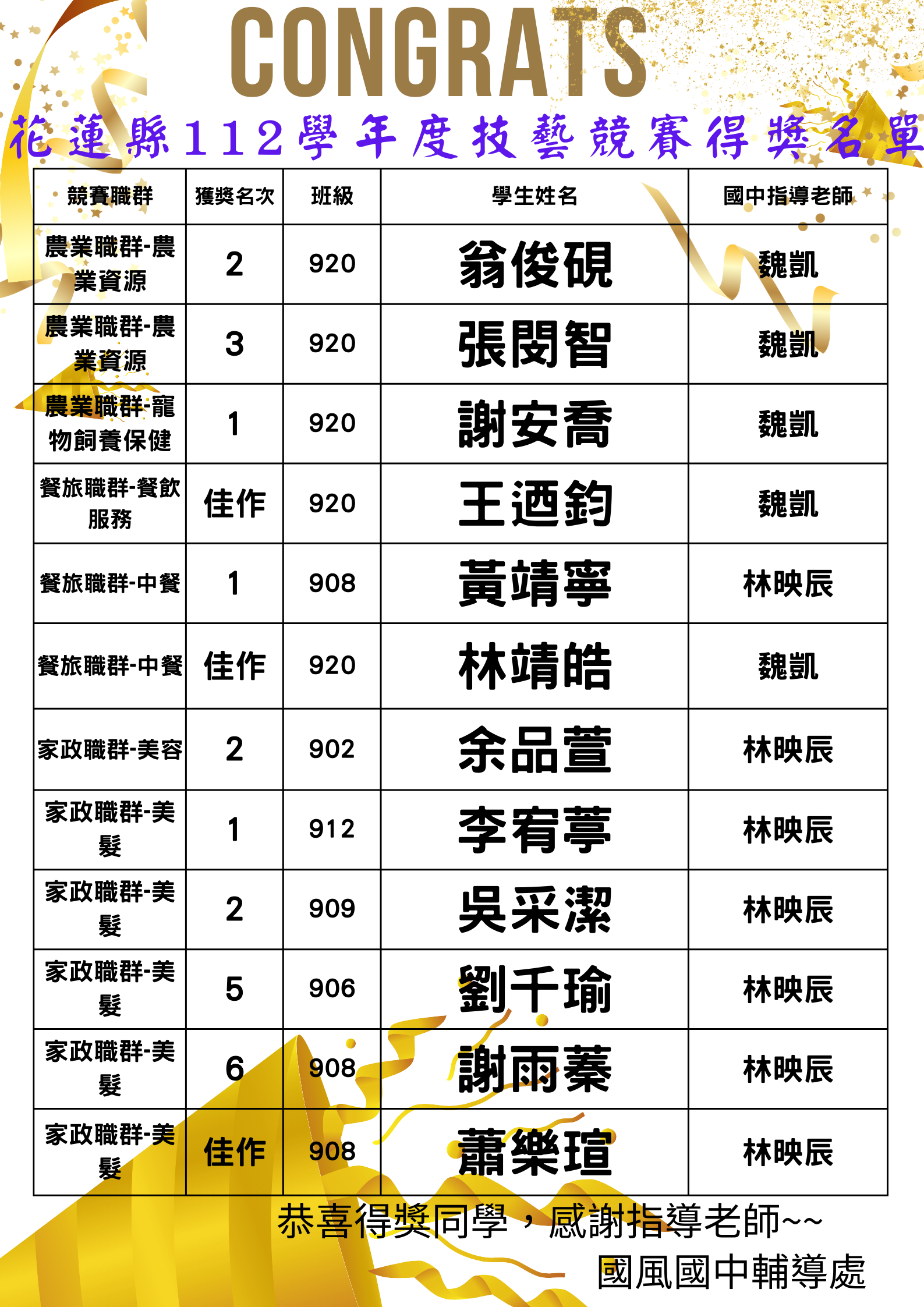 ~~恭喜以上獲獎同學,感謝指導老師辛勞~~