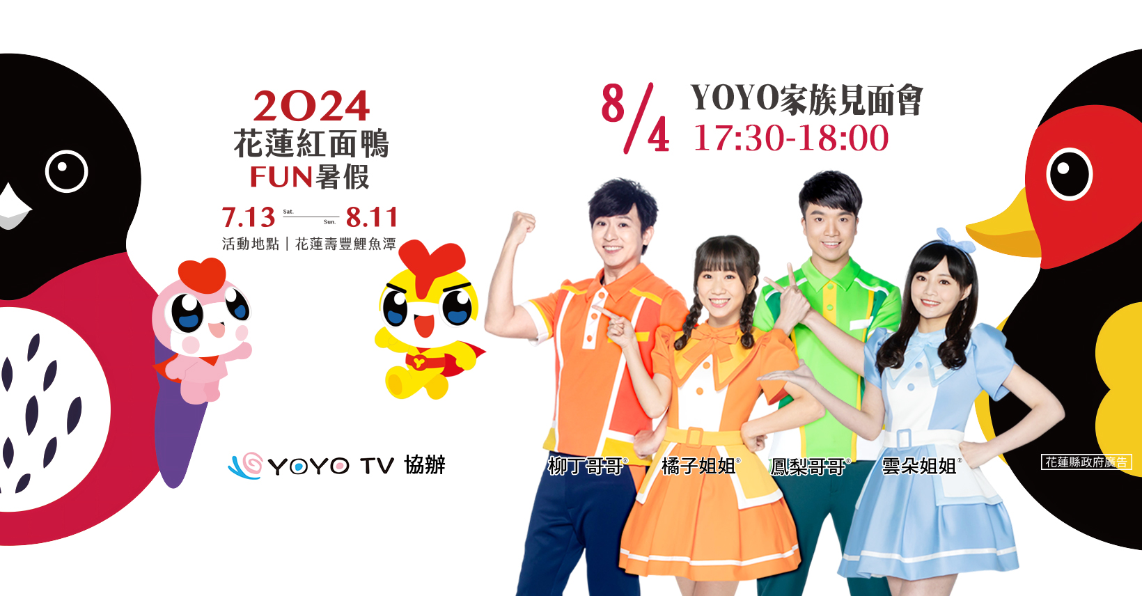 二、本活動於 8 月 4 日舉辦鴨鴨總動員活動,歡迎穿戴與鴨子意象之衣物或攜帶相關飾物至鯉魚潭活動會場,與現場裝置藝術品拍照並上傳至 FB 或 IG ,即可抽鴨鴨懶骨頭、抱枕等活動限定小禮;下午 5 時 30 分《 YOYO 家族見面會》特別邀請柳丁哥哥、橘子姐姐、鳳梨哥哥、雲朵姊姊與現場小朋友們唱跳互動,歡迎闔家一起來鯉魚潭同歡。