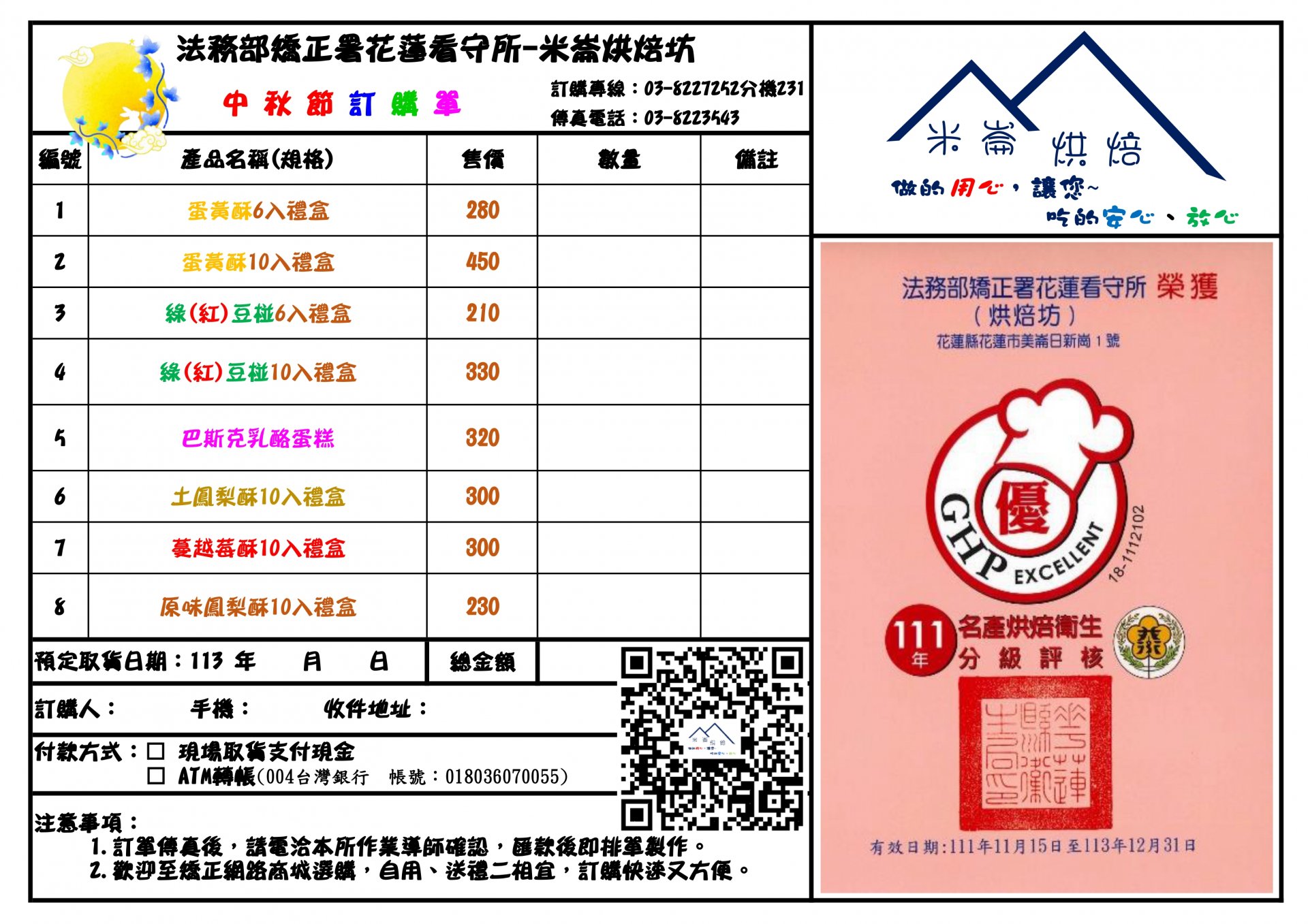 中秋佳節即將來臨,檢送本所自營作業食品科產品型錄及訂購單各1份,敬請貴機關與同仁踴躍訂購,並惠予張貼公告,請查照。