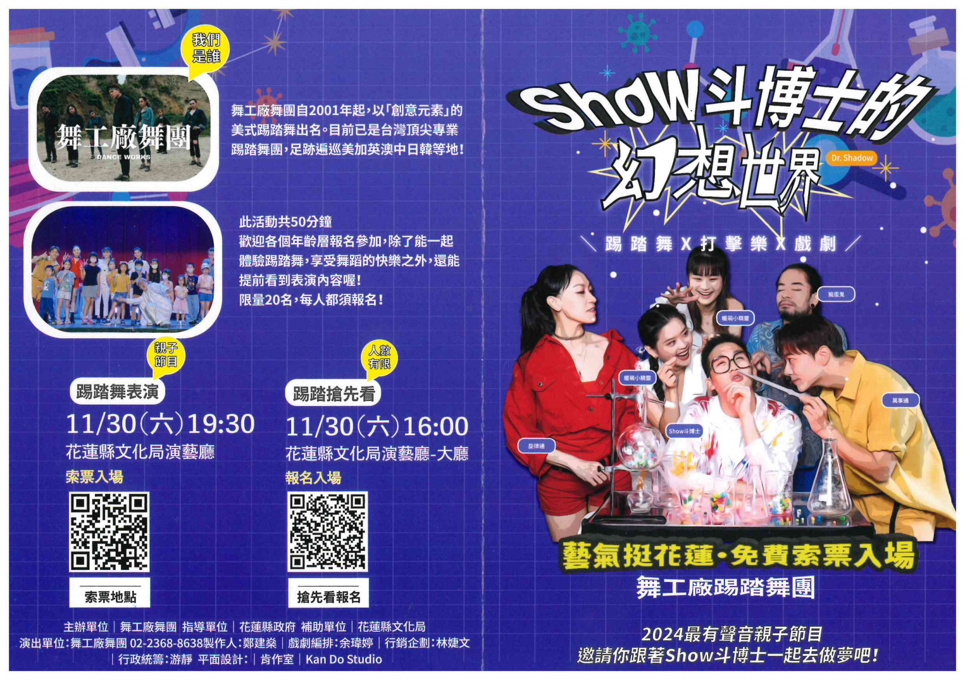 舞工廠踢踏舞團辦理「Show斗博士的幻想世界」活動,詳情請見內容。