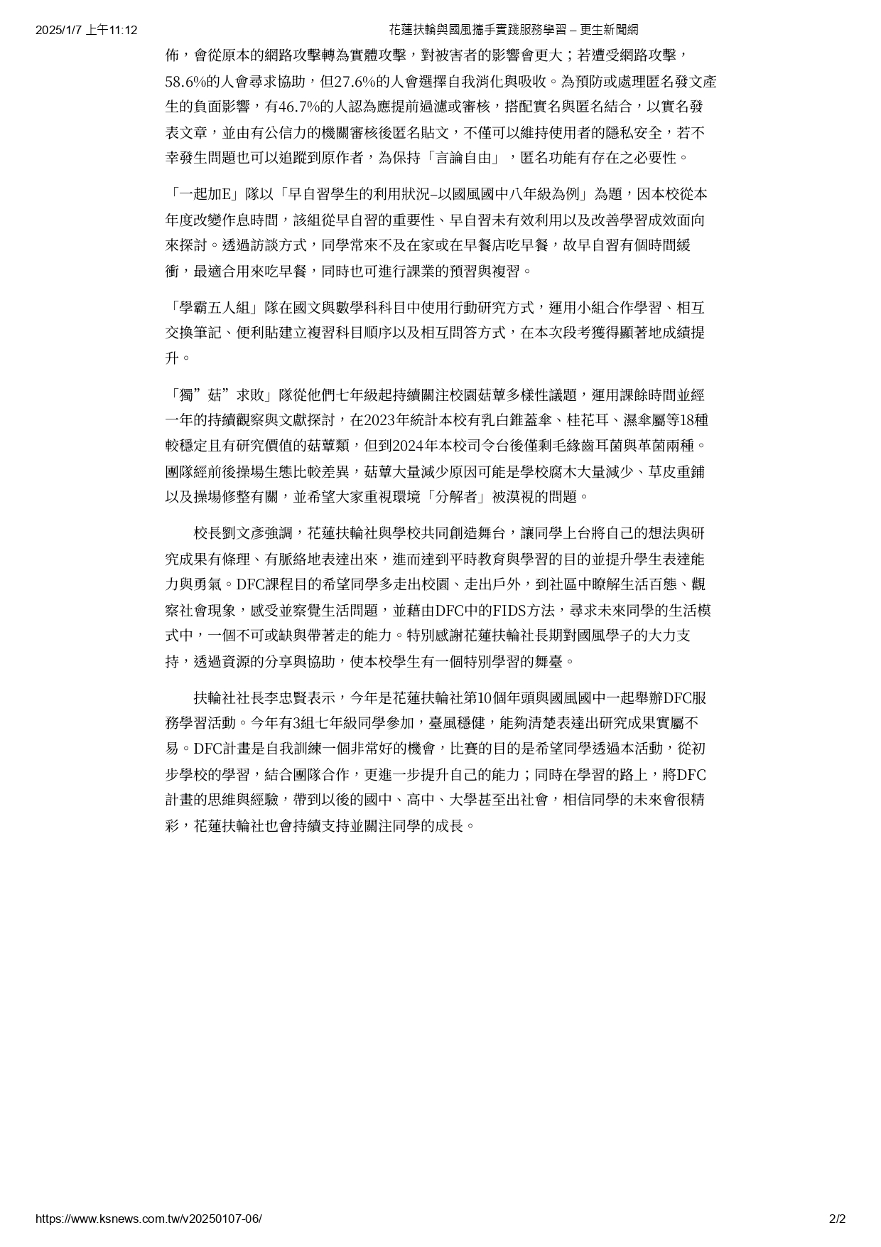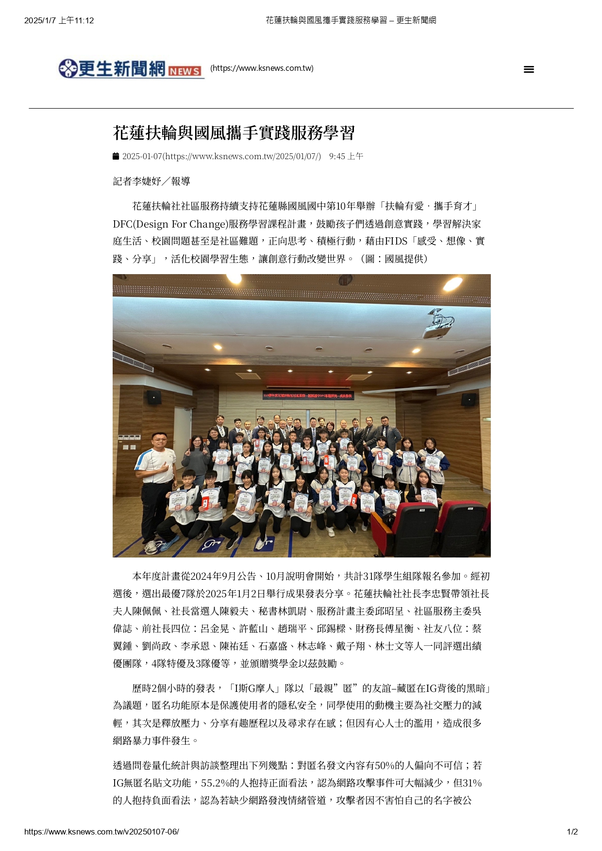 花蓮扶輪與國風攜手實踐服務學習,請師長、家長與同學參閱。