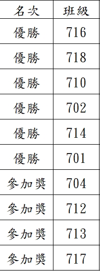 得獎名次及班級如附件,恭喜得獎之班級!