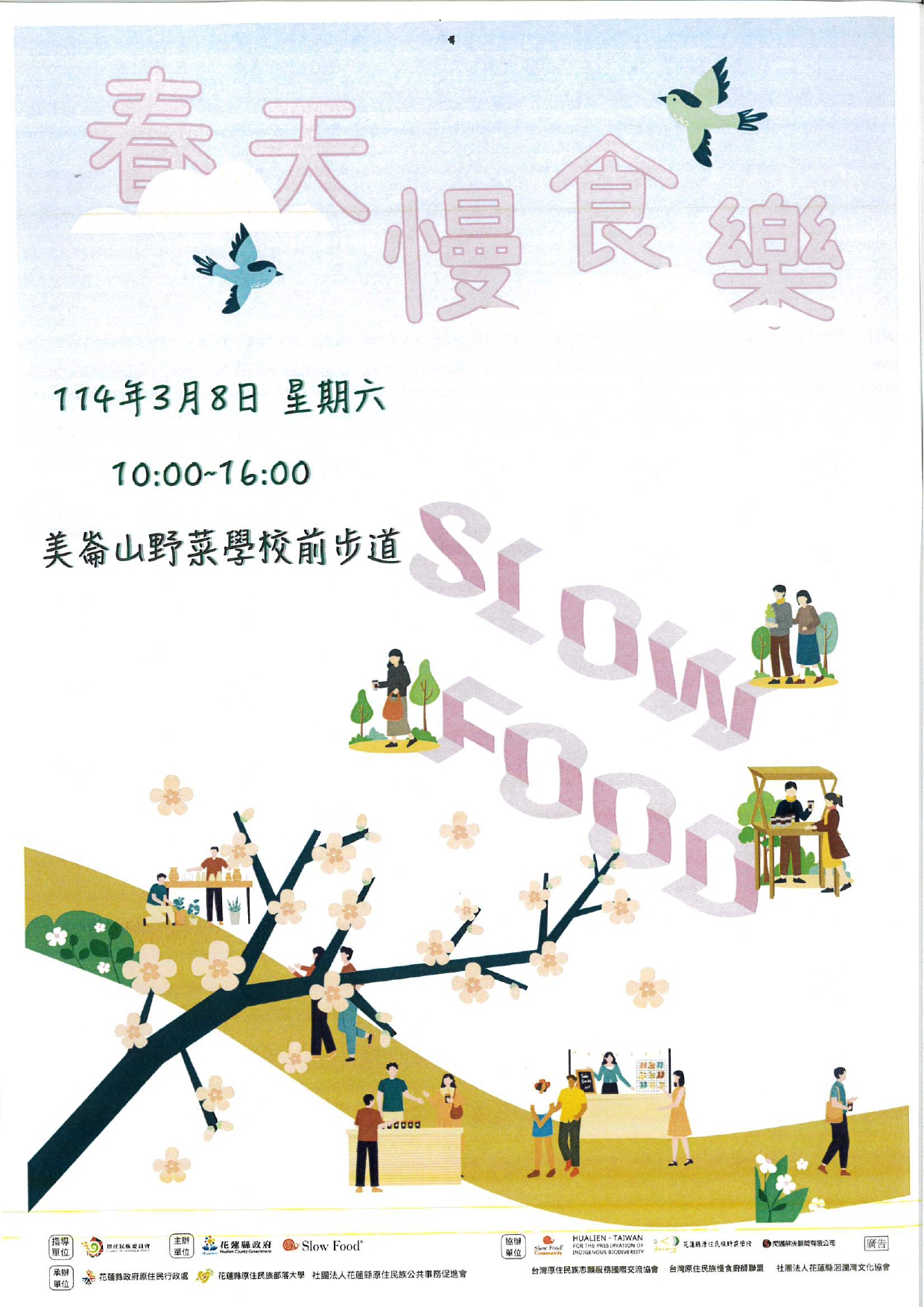 二、活動時間訂於 114 年 3 月 8 日(星期六)上午 10 時至下午 4 時,於美崙山公園野菜學校前步道 ( 花蓮市尚志路 25 之 2 號 )舉辦,敬請廣為週知並踴躍參加。