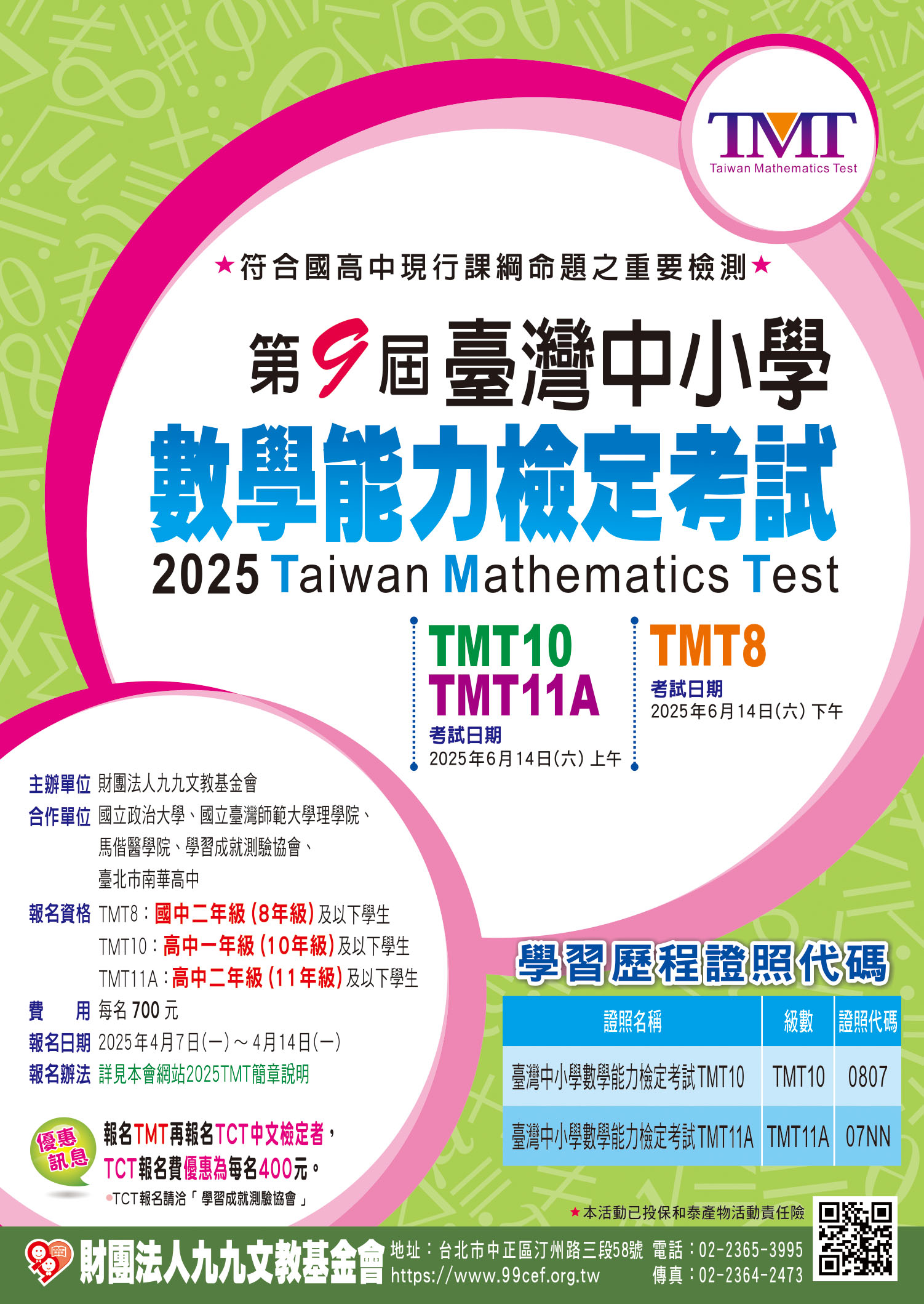 (一) | TMT8 :全國 8 年級(國中二年級)以下(含)在學學 |