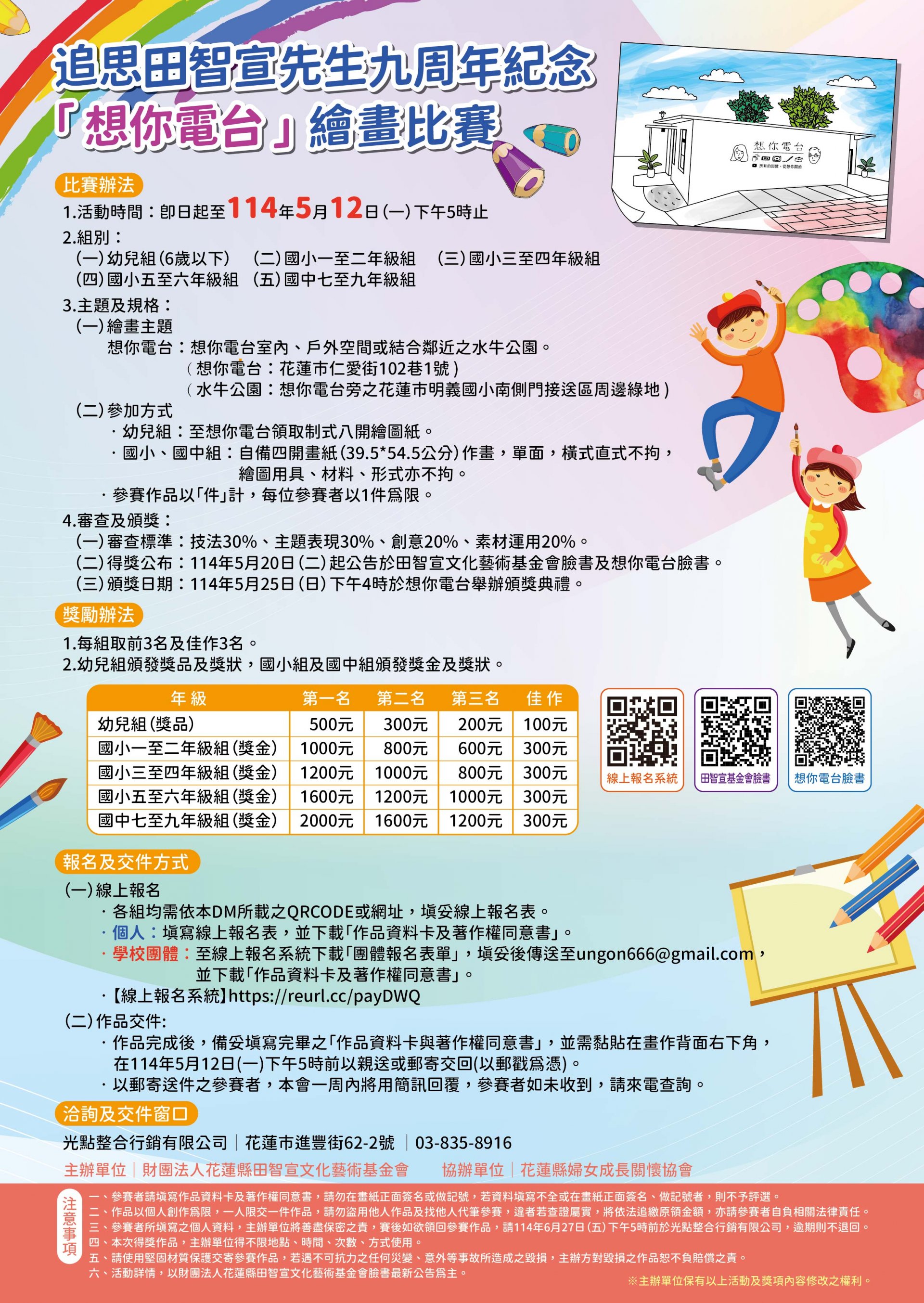 財團法人花蓮縣田智宣文化藝術基金會辦理追思田智宣先生九周年紀念 「想你電台」繪畫比賽及數位圖像創作活動