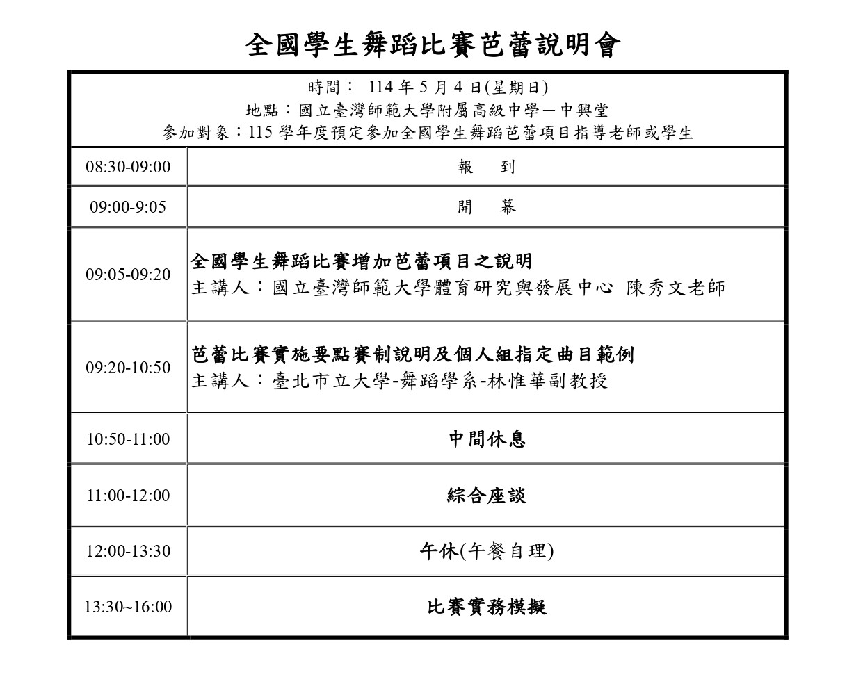 臺灣師範大學辦理「全國學生舞蹈比賽芭蕾說明會」,請有興趣的師長與同學參加。