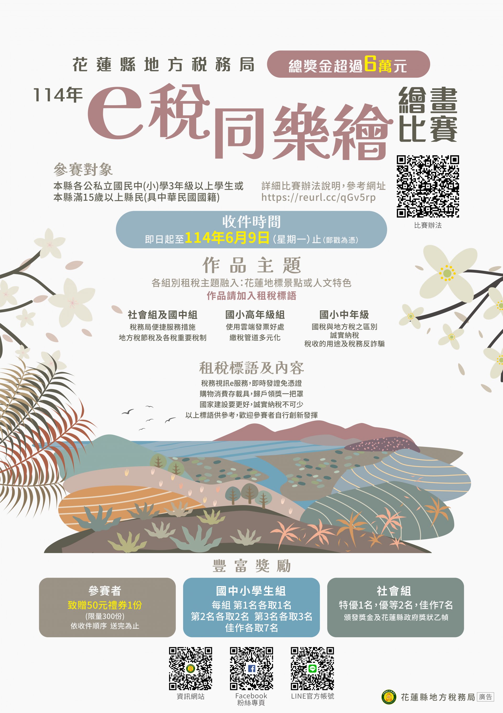 花蓮縣地方稅務局舉辦114年「e稅同樂繪」繪畫比賽活動,請同學踴躍參加