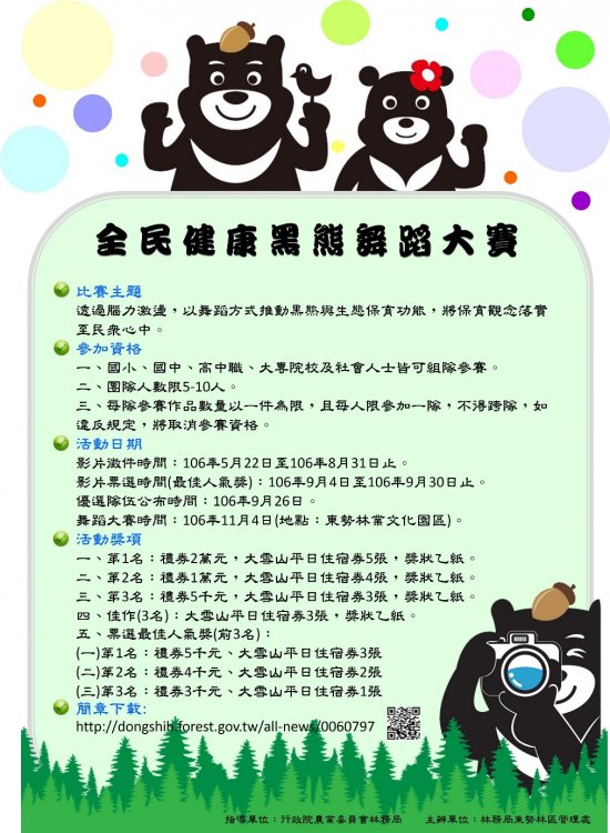 有關行政院農業委員會林務局東勢林區管理處舉辦之「全民健康黑熊舞蹈大賽」,歡迎參加!