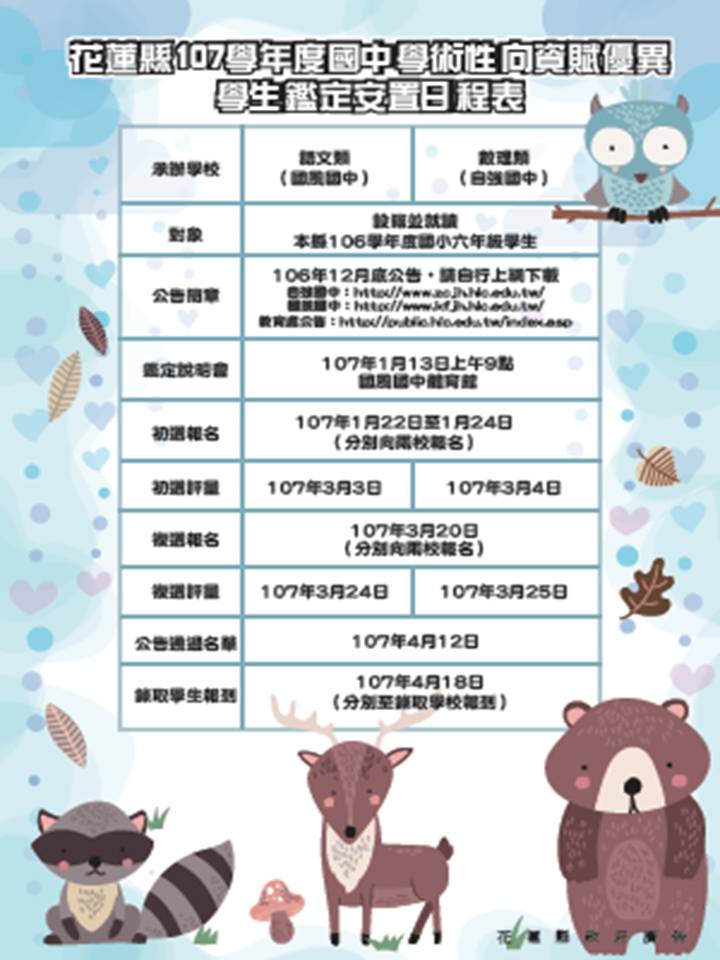 107學年度國小一般智能資優學生鑑定及國中學術性向資優學生鑑定日程表