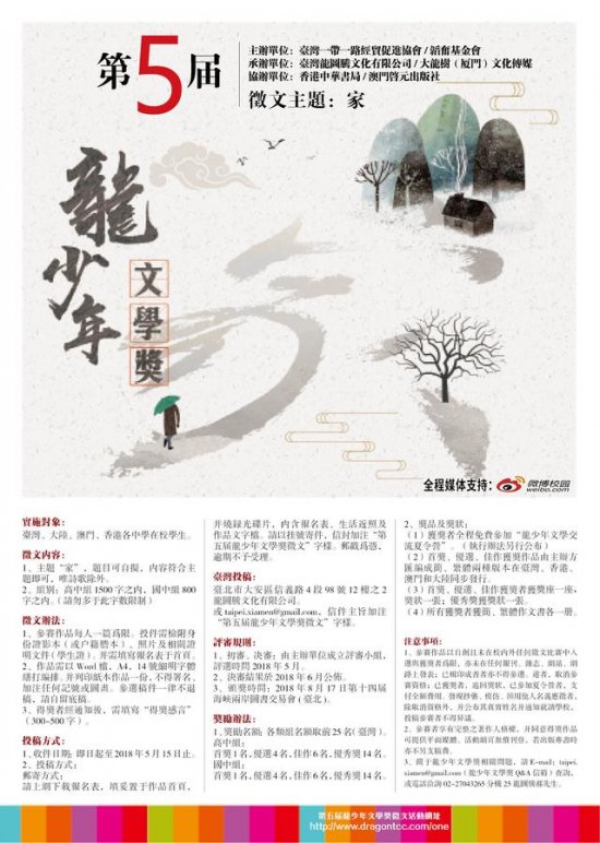 本屆徵文主題為「家」,收件日期至 107 年 5 月 15 日止。