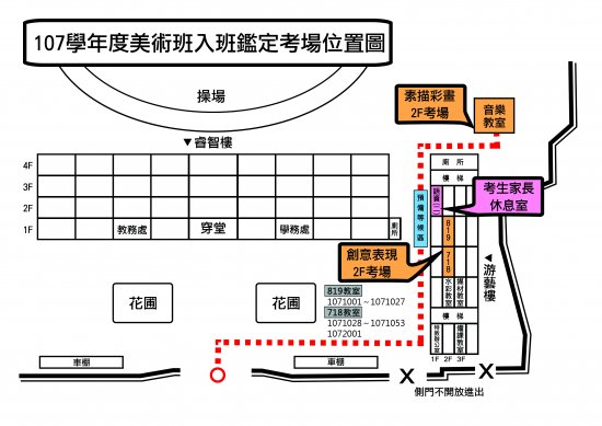 107學年度國風國中美術班入班鑑定考場位置圖