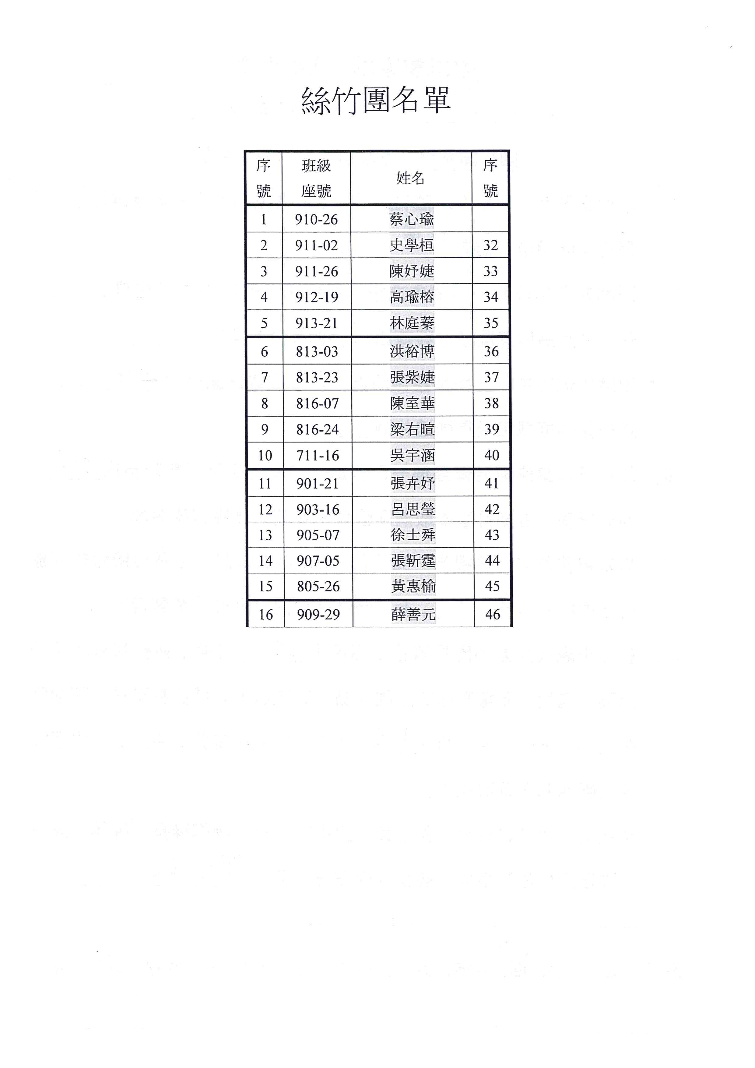 學生名單如下