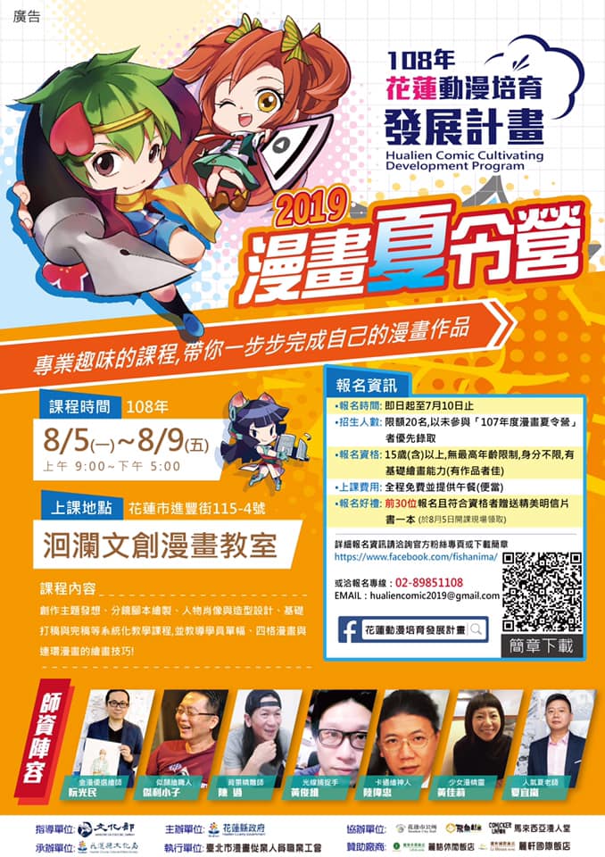 2019花蓮動漫培育發展計畫---漫畫夏令營