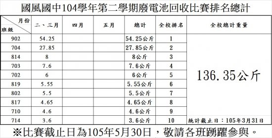 每月統計表將公告於穿堂,敬請各班踴躍參與。