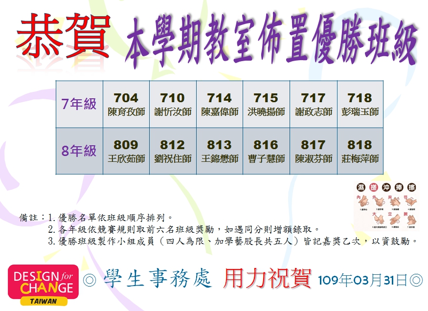 狂賀!恭喜108學年度第2學期「班級教室布置」得獎名單!