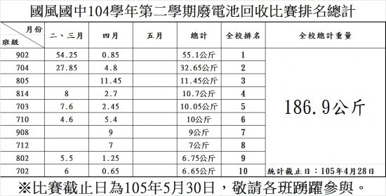 104學年第二學期廢乾電池回收四月份統計表