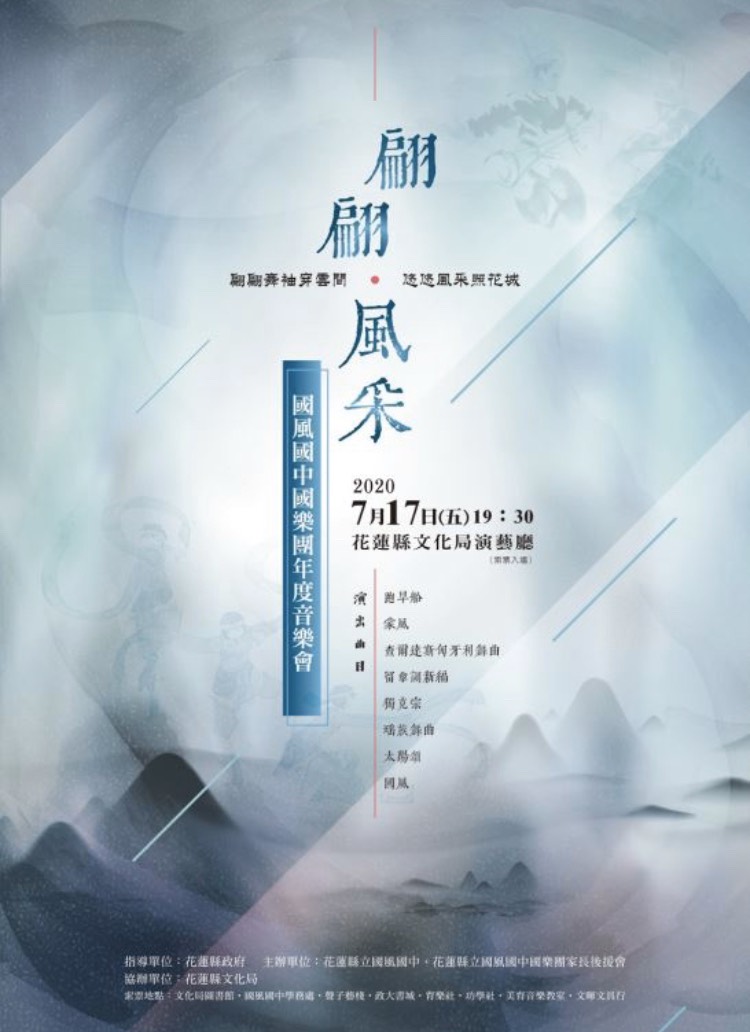 國風國中國樂團即將於 7 月 17 日晚間 7 點 30 分,在花蓮縣文化局演藝廳舉辦「翩翩風采」音樂會。