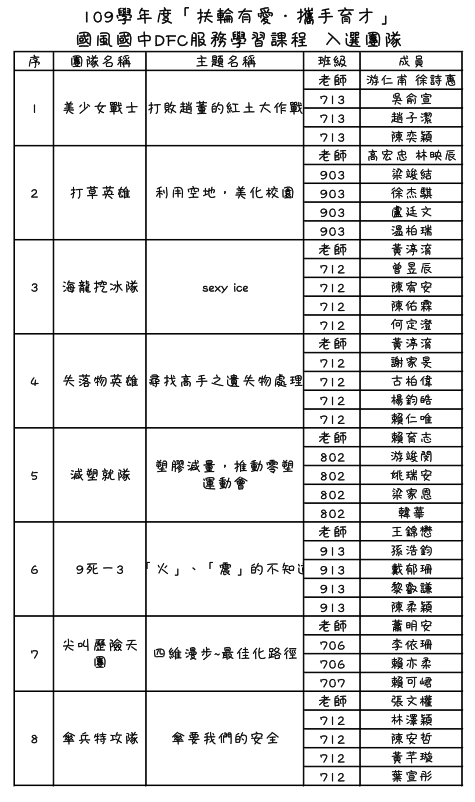 公告109學年度「扶輪有愛.攜手育才」 國風國中DFC服務學習課程 上台報告團隊!
