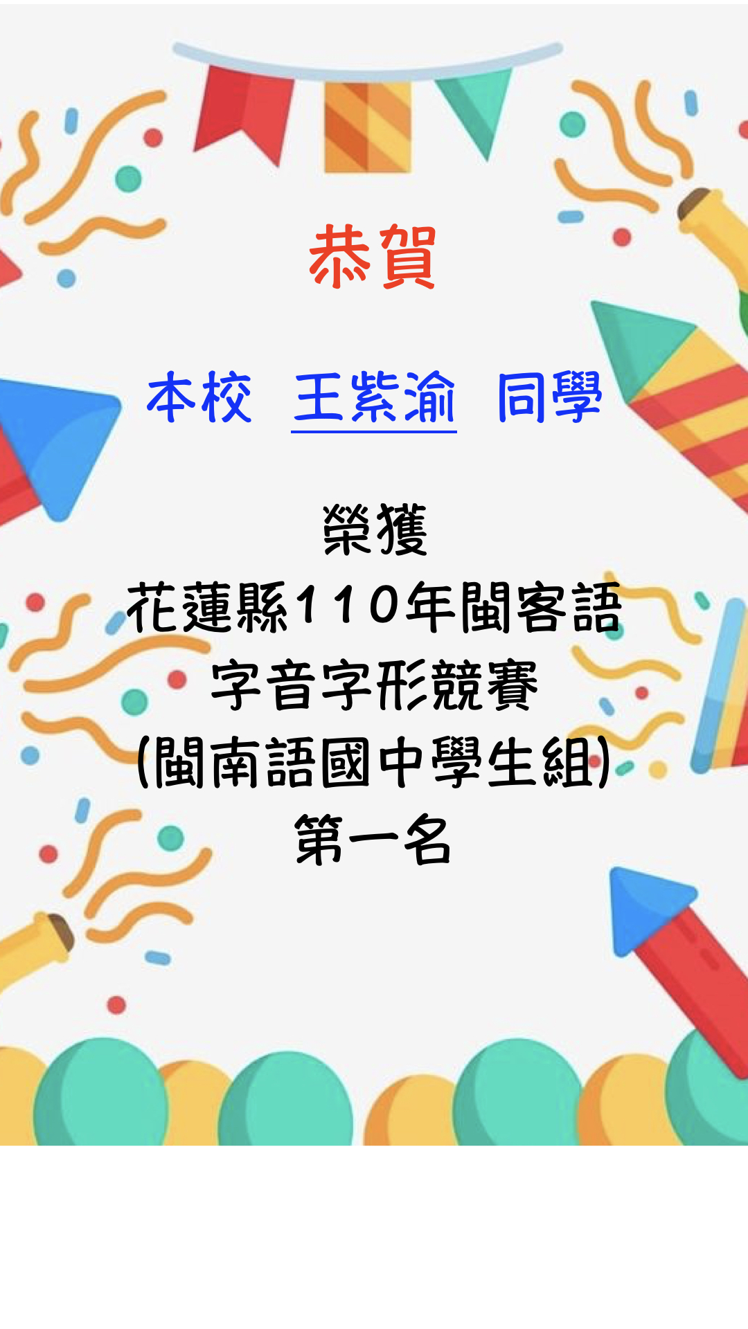 花蓮縣110年閩客語字音字形競賽榮獲佳績