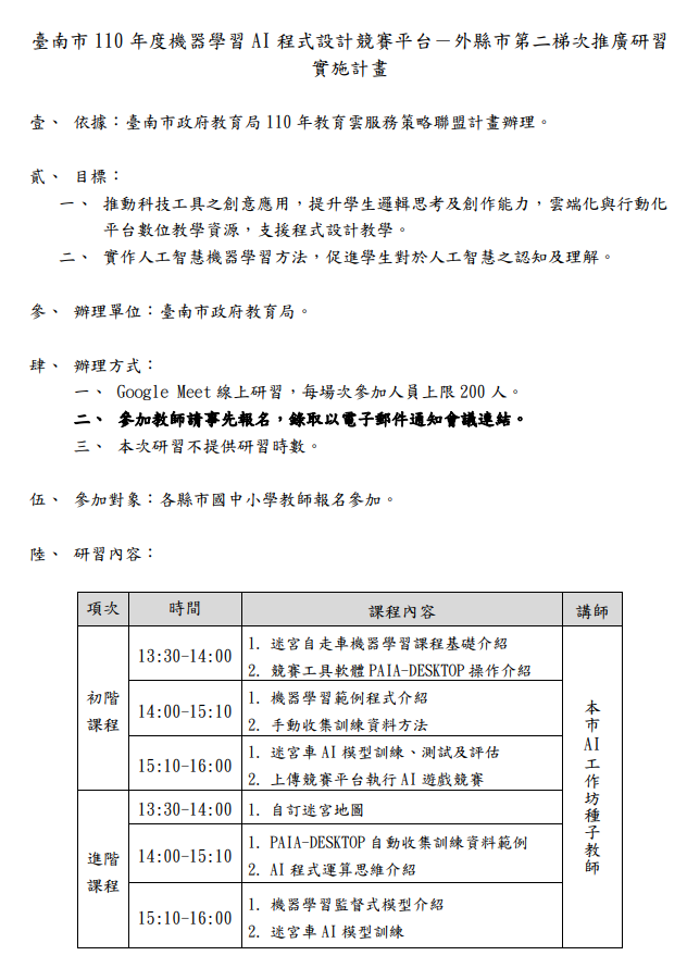 機器學習AI程式設計競賽平台的研習請大家踴躍參加