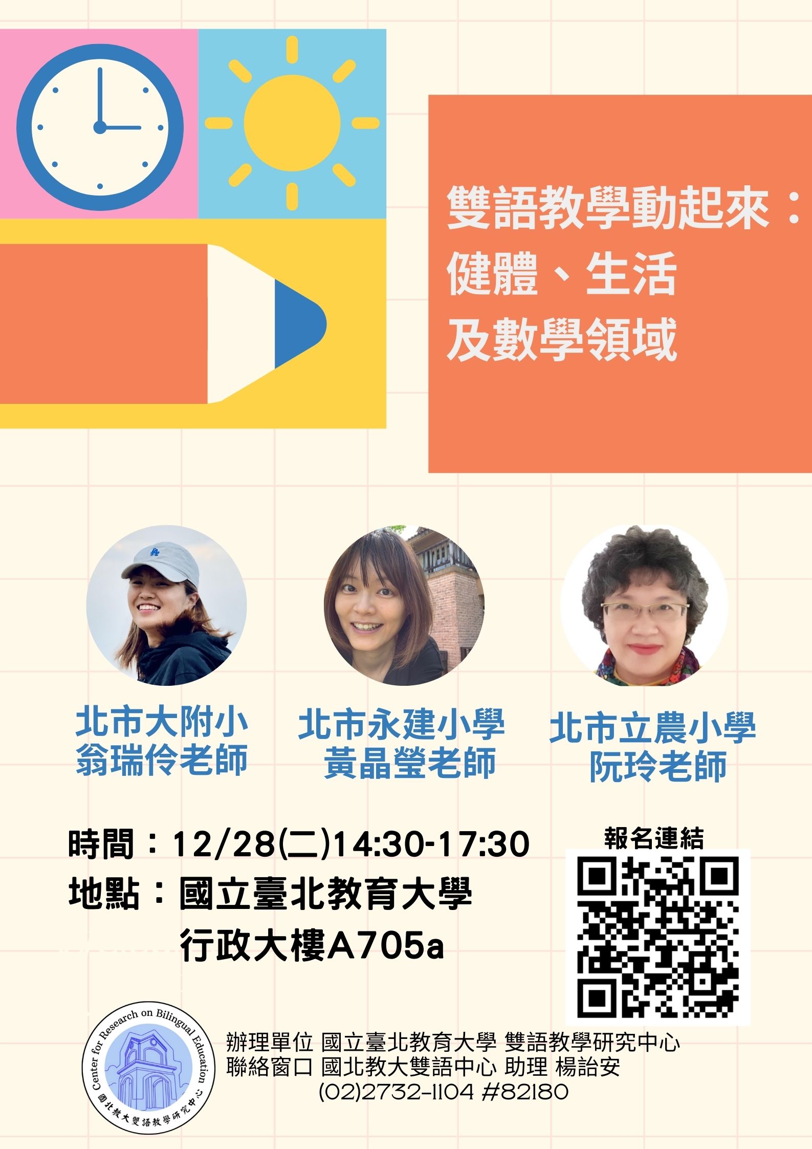 (二)「雙語教學動起來:生活、數學及健康與體育領域」報 名連結: https://forms.gle/M6SNb1vdFNdmNAuG7