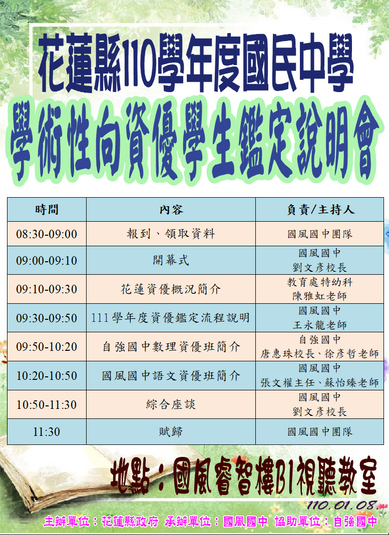 花蓮縣111學年度國民中學學術性向資賦優異鑑定安置『說明會』