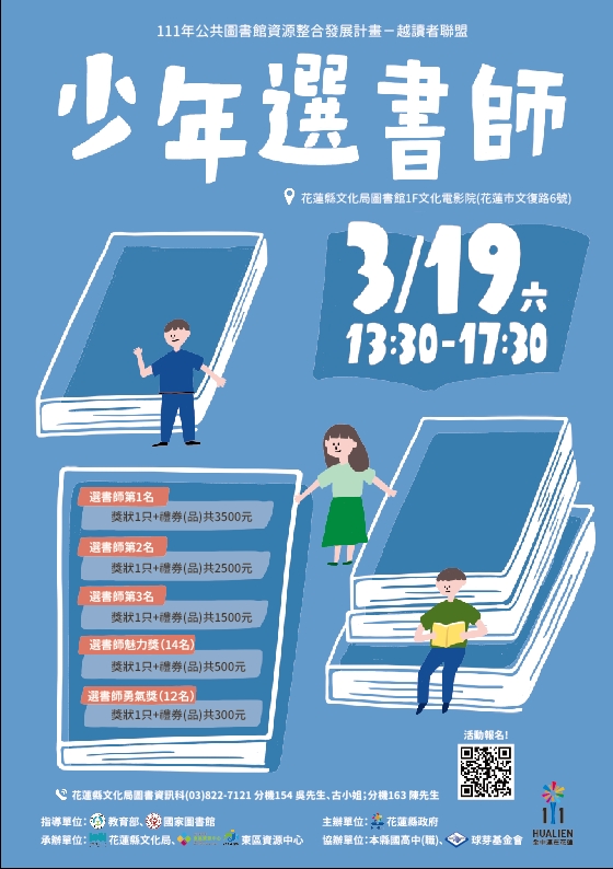 (五) | 活動聯絡人:活動詳情請洽本局圖書資訊科 03-8227121 分機 154 古小姐、吳先生及分機 163 陳先生。 |