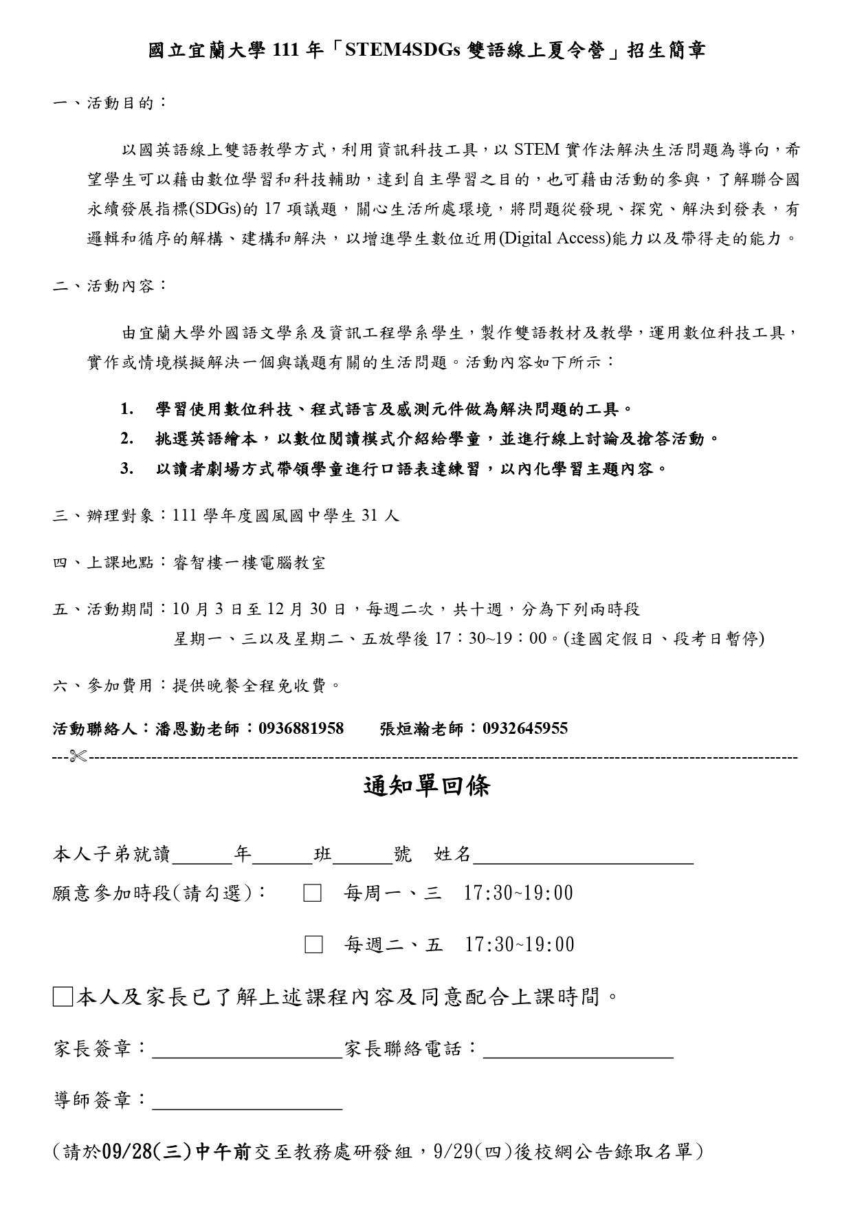 1) 國立宜蘭大學111年「STEM4SDGs雙語線上夏令營」招生簡章0923.pdf