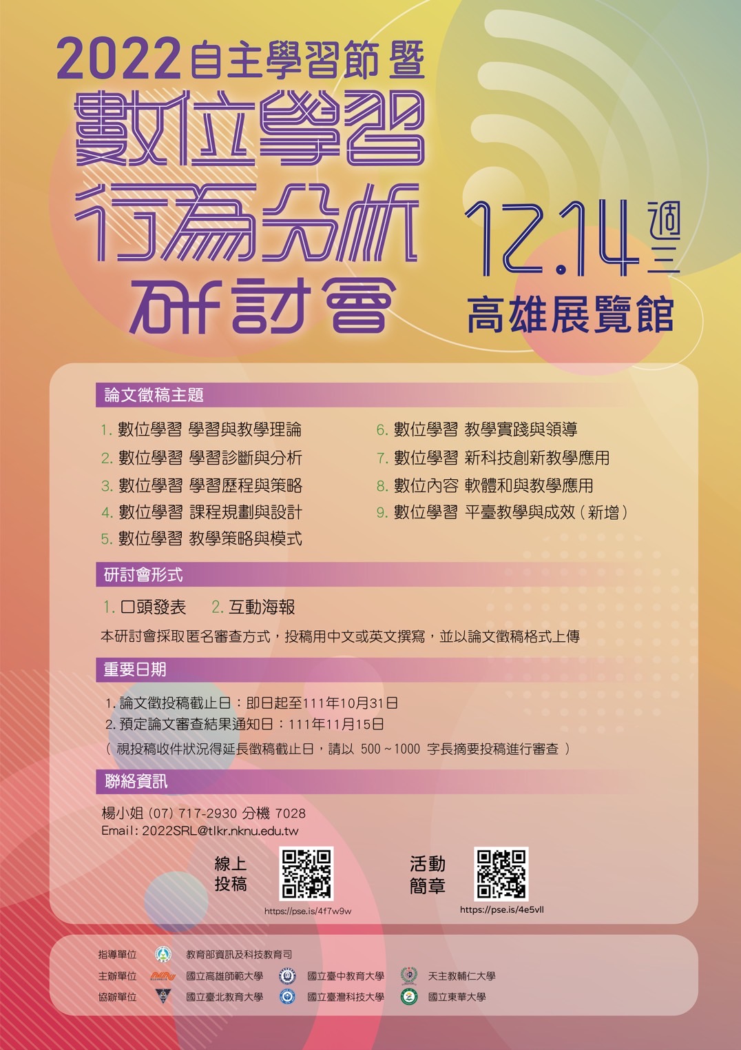 國立高雄師範大學更新「2022自主學習節暨數位學習行為分析研討會」簡章及海報