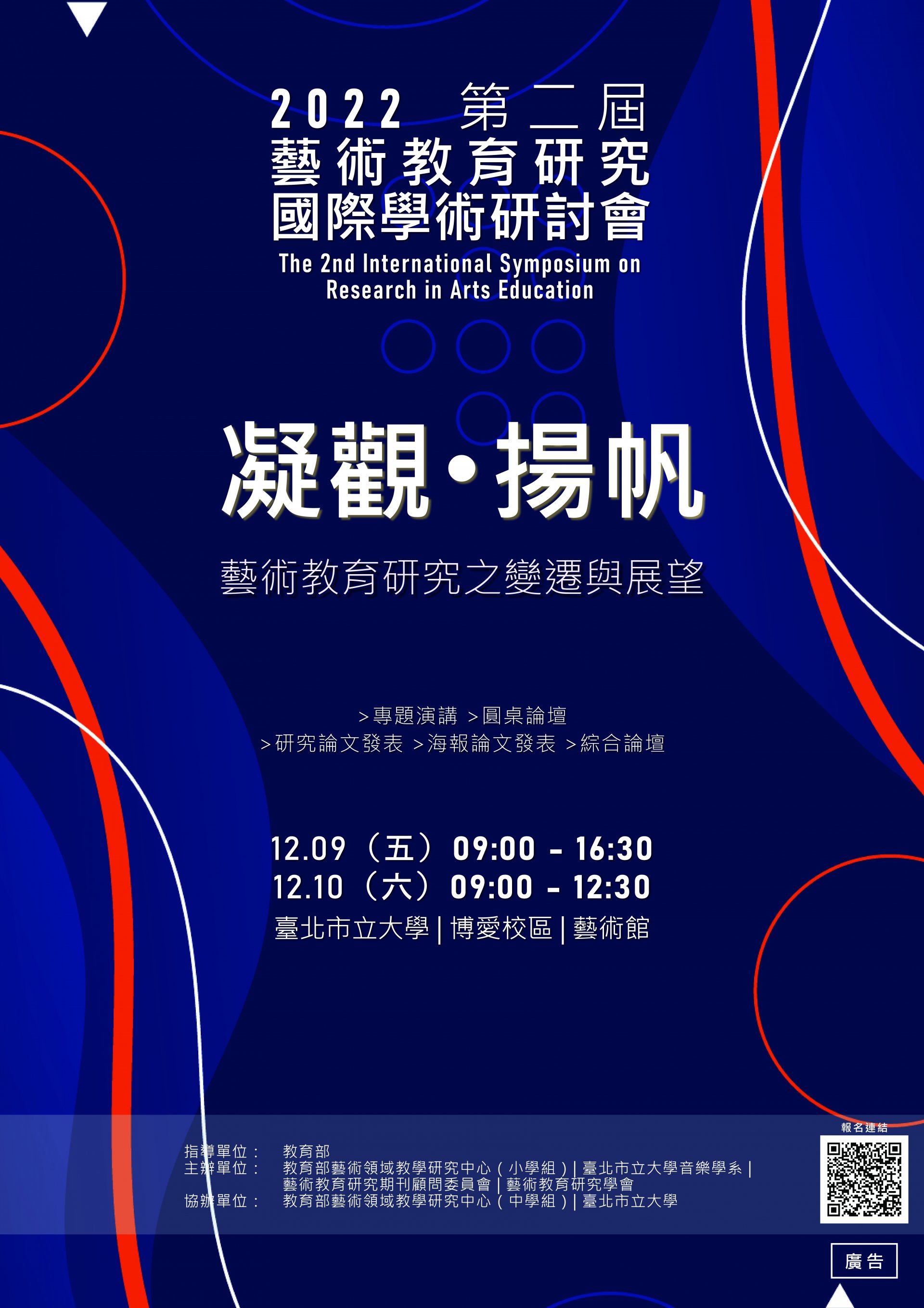臺北市立大學音樂學系111年12月9日至10日辦理之「2022第二屆藝術教育研究國際學術研討會『凝觀揚帆--藝術教育研究之變遷與展望』」