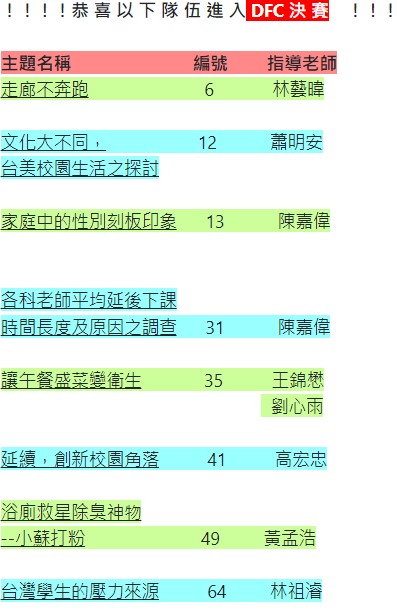 決賽日期為 12/27(二)下午第五節至第七節,請同學加緊準備